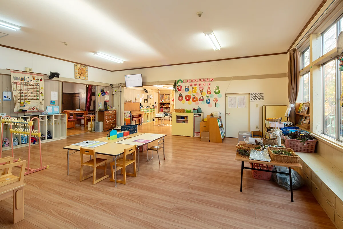 メインの教室です。工作や英語あそびなど、さまざま保育を行います。