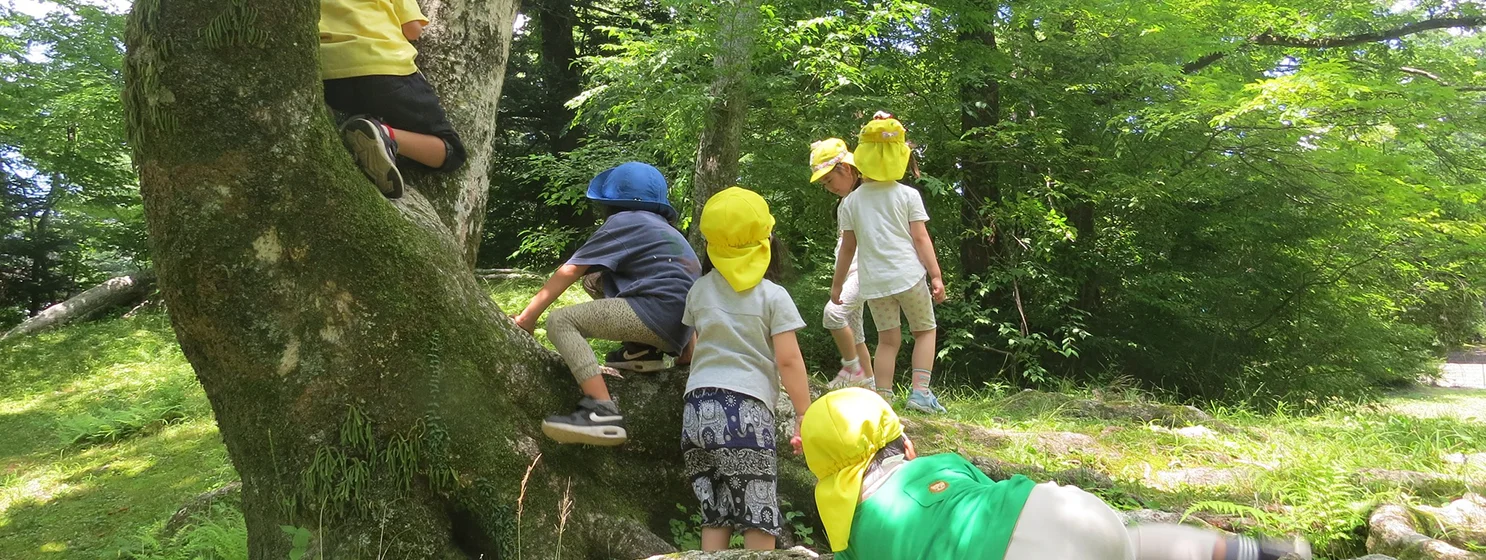 信州の豊かな自然環境と多様な地域資源を活用した屋外を中心とする様々な体験活動を積極的に取り入れる保育、幼児教育です。